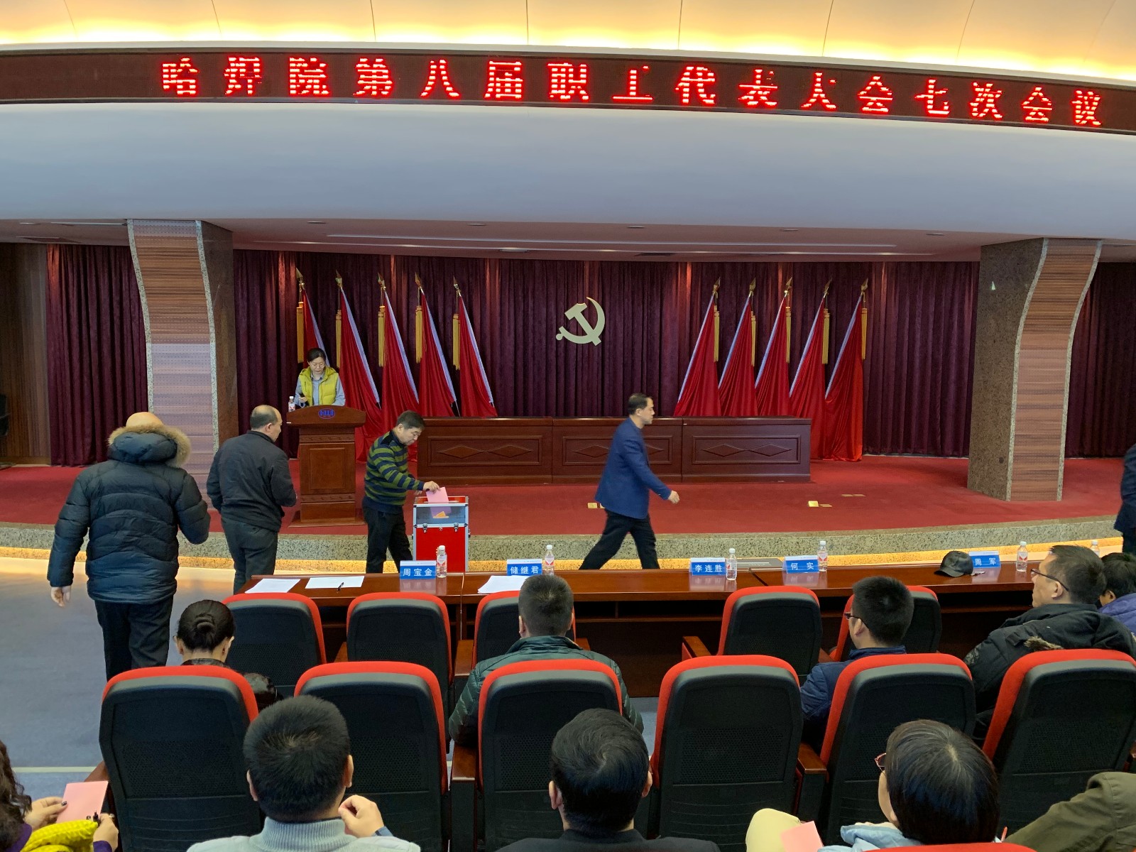 哈焊院嚴(yán)格按照民主程序進(jìn)行出席總院集團(tuán)第二屆職代會(huì)職工代表的選舉工作,經(jīng)過分工會(huì)醞釀推選、黨委會(huì)充分研究討論,確定了6名職工代表候選人。哈焊院職代會(huì)八屆七次會(huì)議通過無記名投票方式,42名正式代表采取現(xiàn)場投票和流動(dòng)票箱的形式差額選舉出5名出席機(jī)械總院集團(tuán)第二屆職代會(huì)職工代表,(按得票高低)分別為:李連勝、儲繼君、陳波、郝龍宇、徐富家。選舉結(jié)果經(jīng)黨委會(huì)討論通過后,上報(bào)機(jī)械總院集團(tuán)進(jìn)行代表資格審查。