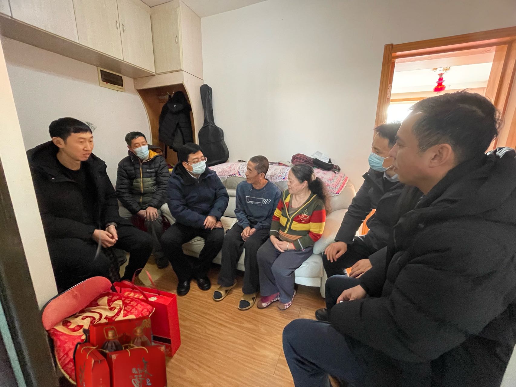春節將至,年味漸濃,大家都在期盼著溫馨的團圓時刻。但受新冠疫情和當地局勢影響,有幾位哈焊人仍然身處遙遠他鄉,不辭辛苦地奮戰在項目一線,他們就是哈焊院駐哈薩克斯坦“一帶一路”項目組現場安裝調試人員。哈焊院時刻牽掛著遠在異國他鄉員工的健康安危,時刻關心著員工家屬的生活需求,1月22日,哈焊院黨委書記、董事長楊玉亭帶隊走訪慰問了員工家屬,黨委副書記、總經理雷振,黨委副書記、紀委書記、工會主席儲繼君,智能裝備中心、黨群工作部相關負責人陪同慰問。