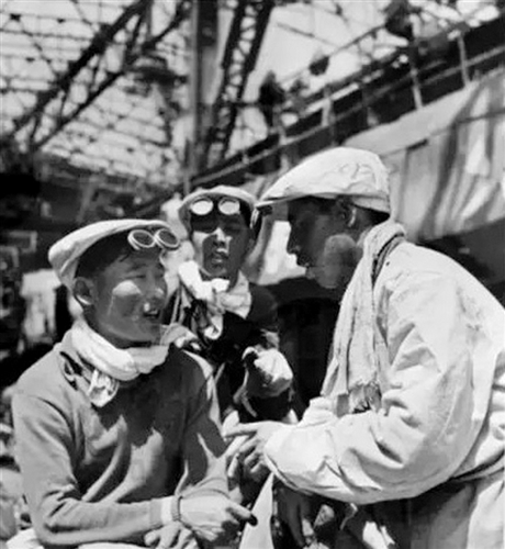 在包鋼一號高爐建設(shè)工地勞動的工人