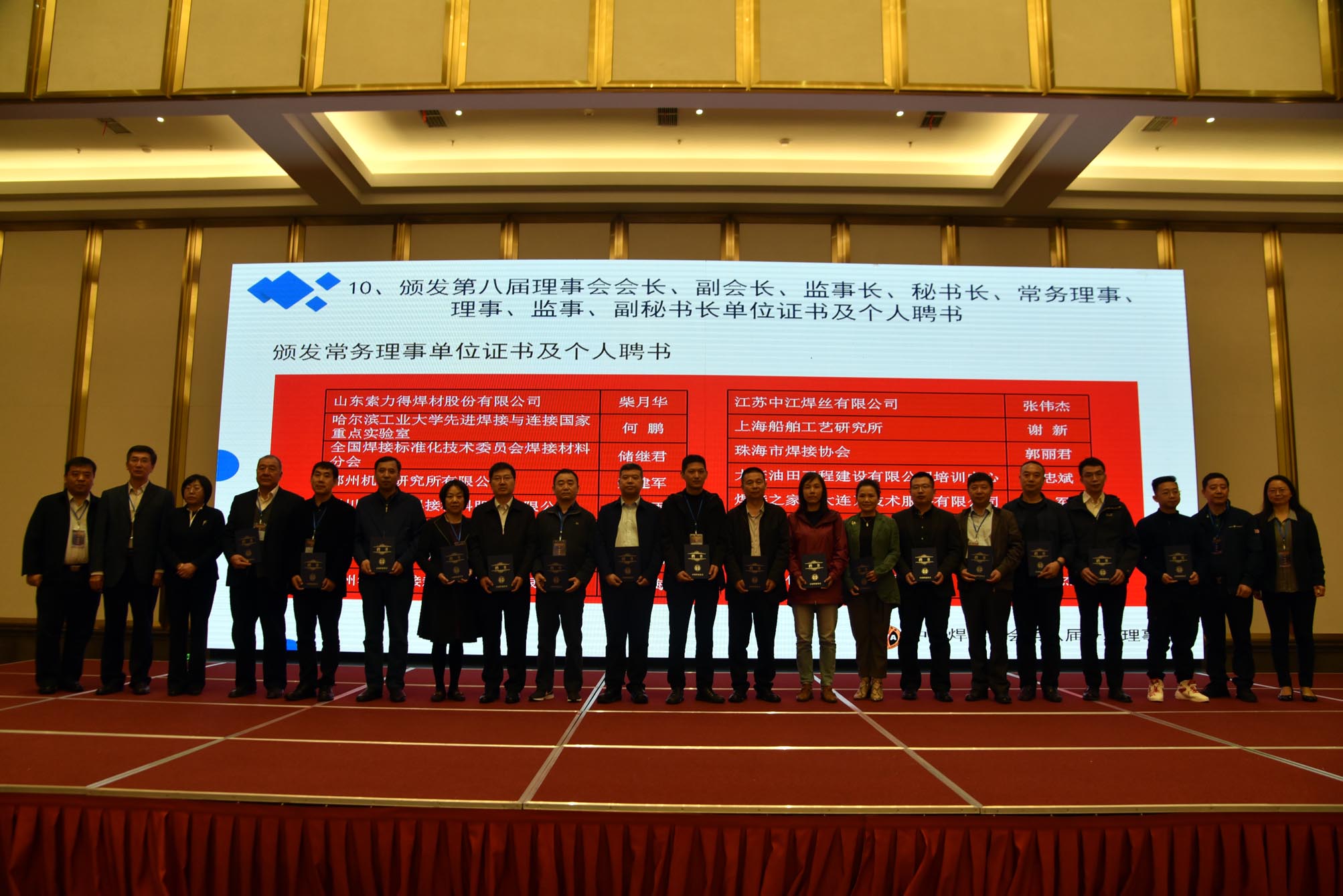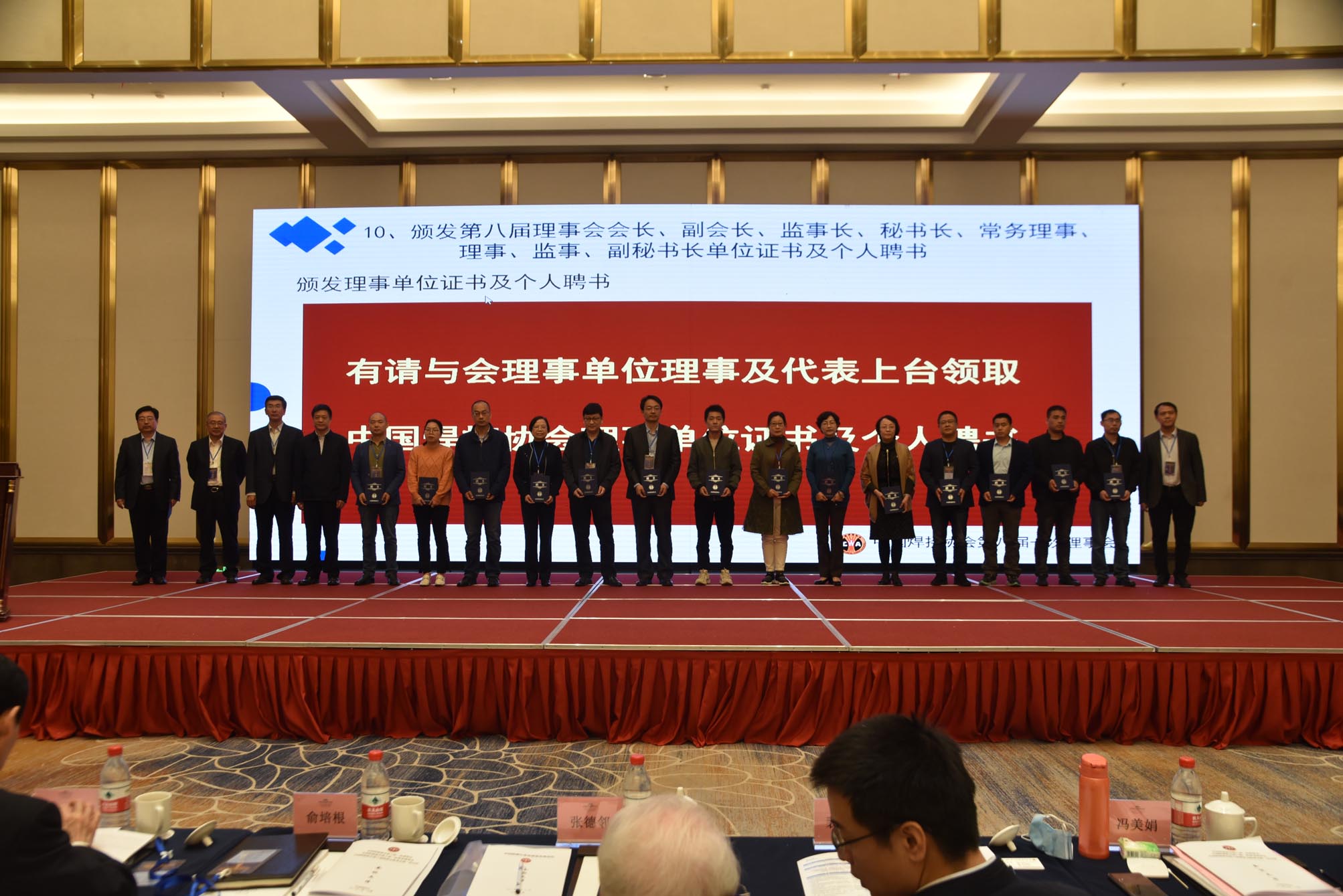 隨后大會進(jìn)入頒發(fā)第八屆理事會會長、副會長、監(jiān)事長、秘書長、常務(wù)理事、理事、監(jiān)事、副秘書長單位證書及個人聘書環(huán)節(jié)。