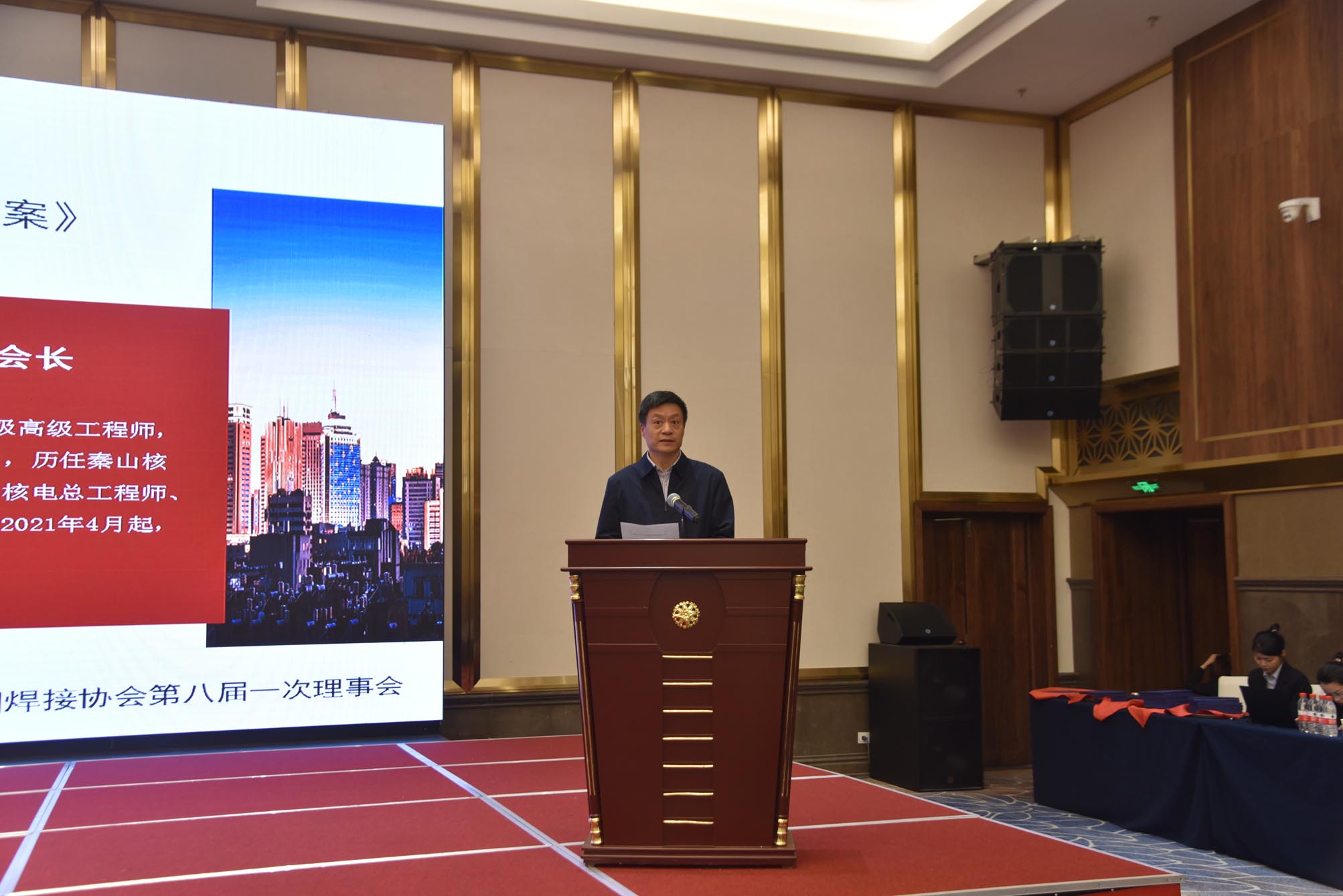 中機(jī)智能裝備創(chuàng)新研究院(寧波)有限公司董事長、總經(jīng)理龍偉民宣讀了《中國焊接協(xié)會第八屆理事會常務(wù)理事候選名單》,待稍后投票表決。